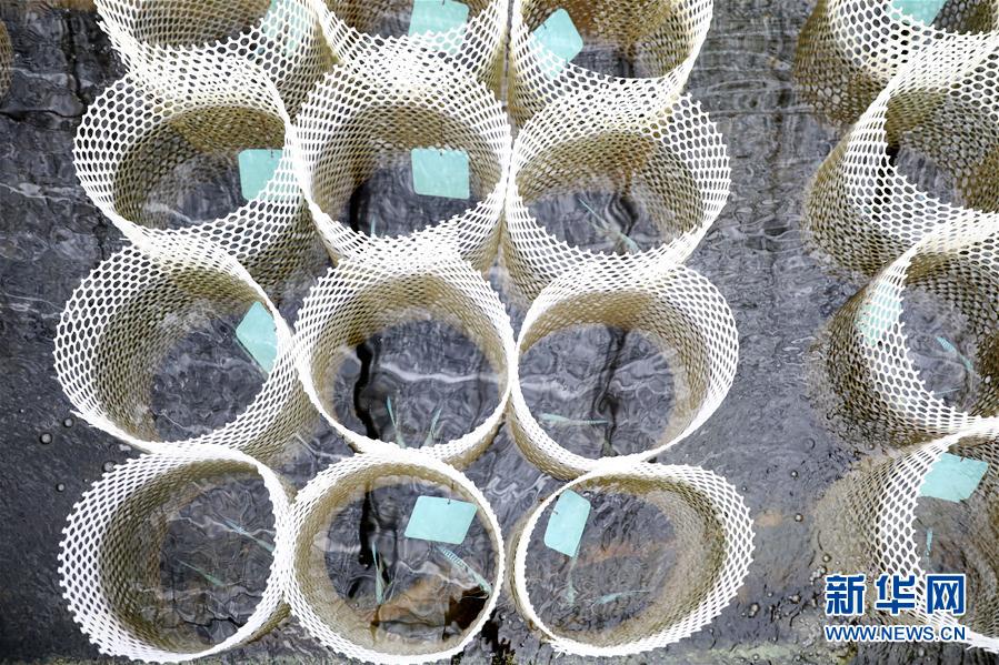這是張忠堡村村民李國鵬養(yǎng)殖池里的觀賞魚育種筐(8月4日攝)。新華社記者姚劍鋒攝