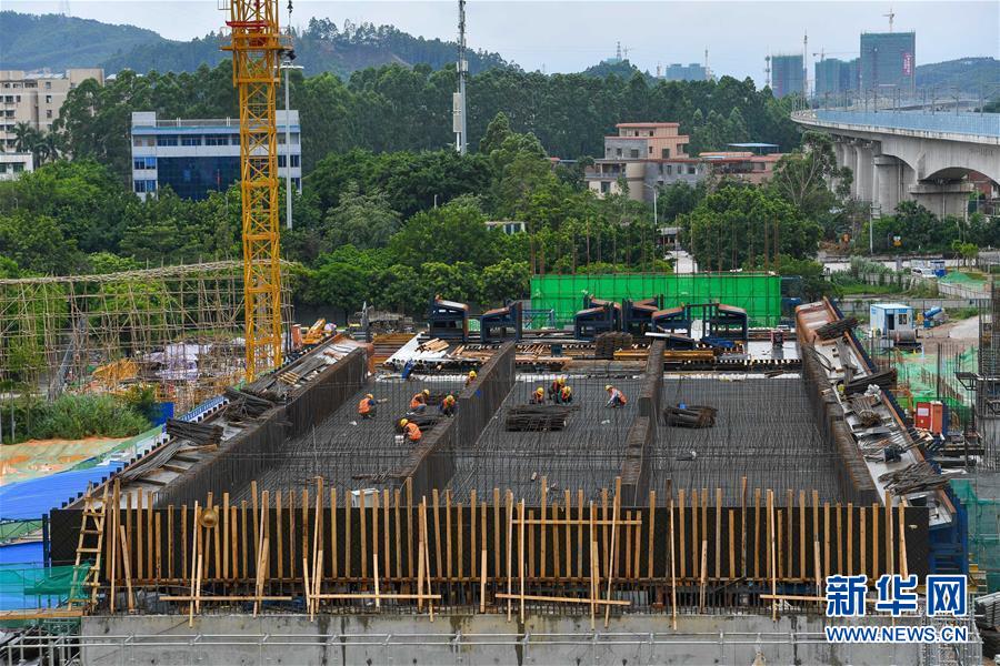 8月5日,中鐵十一局工人在清遠(yuǎn)磁浮銀盞溫泉站施工作業(yè)。目前,廣東首條中低速磁浮線——清遠(yuǎn)磁浮旅游專線項目建設(shè)有序推進(jìn)。廣東清遠(yuǎn)磁浮旅游專線項目全長約38公里,分兩期建設(shè)。首期全長8.014公里,將在9月份開始鋪軌,預(yù)計在2020年底實(shí)現(xiàn)主體工程全面完工。新華社記者劉大偉攝