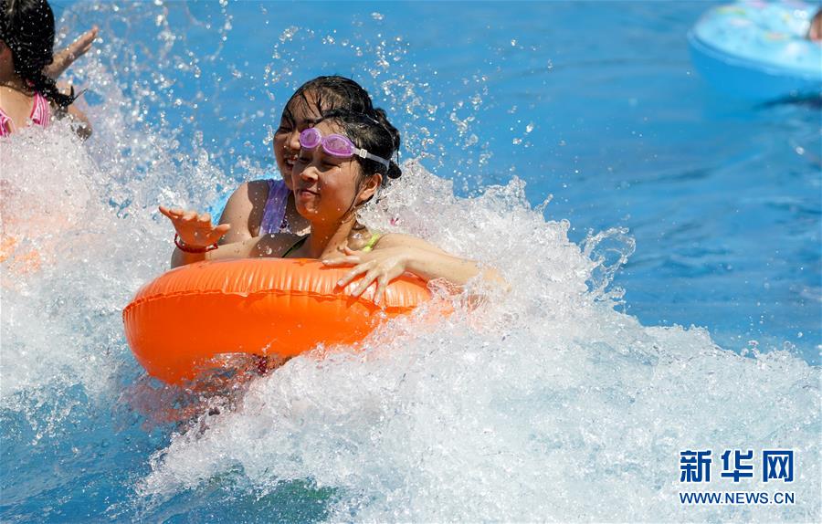 8月5日,重慶涪陵紅酒小鎮(zhèn)水上樂(lè)園內(nèi),市民在水中嬉戲。當(dāng)日,重慶市氣象臺(tái)再次發(fā)布“高溫橙色預(yù)警信號(hào)”,重慶大部分海拔400米以下地區(qū)日最高氣溫將升至37℃以上,局地可達(dá)40℃以上。許多重慶市民涌進(jìn)當(dāng)?shù)氐乃蠘?lè)園和泳池,在水中享受夏季的清涼。新華社記者劉潺攝