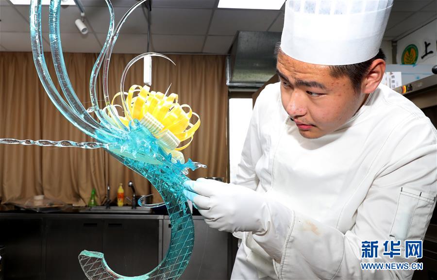 8月5日,糖藝比賽參賽選手在創(chuàng)作中。當日,第二十一屆全國焙烤職業(yè)技能競賽上海賽區(qū)選拔賽,在上海市現(xiàn)代食品職業(yè)技能培訓中心舉行,來自上海、江蘇、浙江等地的近60名焙烤行業(yè)技師,在藝術面包、傳統(tǒng)糕點、糖藝和藝術巧克力等項目中進行比拼,在充滿焙烤香氣的賽場上展現(xiàn)技藝。新華社記者方喆攝