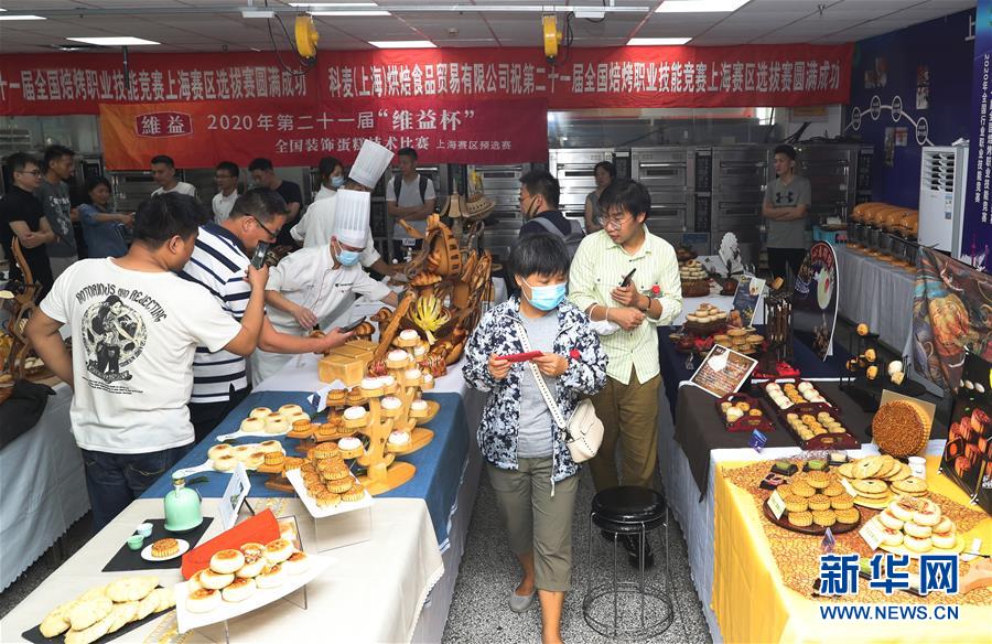 8月5日,觀眾在展示區(qū)觀看參賽選手的作品。當(dāng)日,第二十一屆全國焙烤職業(yè)技能競賽上海賽區(qū)選拔賽,在上海市現(xiàn)代食品職業(yè)技能培訓(xùn)中心舉行,來自上海、江蘇、浙江等地的近60名焙烤行業(yè)技師,在藝術(shù)面包、傳統(tǒng)糕點(diǎn)、糖藝和藝術(shù)巧克力等項(xiàng)目中進(jìn)行比拼,在充滿焙烤香氣的賽場上展現(xiàn)技藝。新華社記者方喆攝