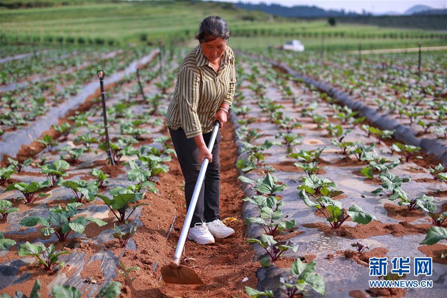 8月6日,村民在威寧縣草海鎮(zhèn)中海社區(qū)蔬菜基地種植西蘭花。新華社記者劉續(xù)攝