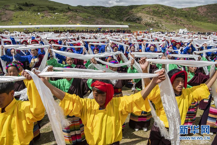 8月7日,在西藏首屆弦子舞展演現(xiàn)場(chǎng),演出人員在表演弦子舞。當(dāng)日,西藏首屆弦子舞展演在昌都市芒康縣舉行。眾多演員同臺(tái)獻(xiàn)藝,表演國(guó)家級(jí)非物質(zhì)文化遺產(chǎn)弦子舞,吸引西藏各地的群眾前來觀看。新華社記者孫非攝