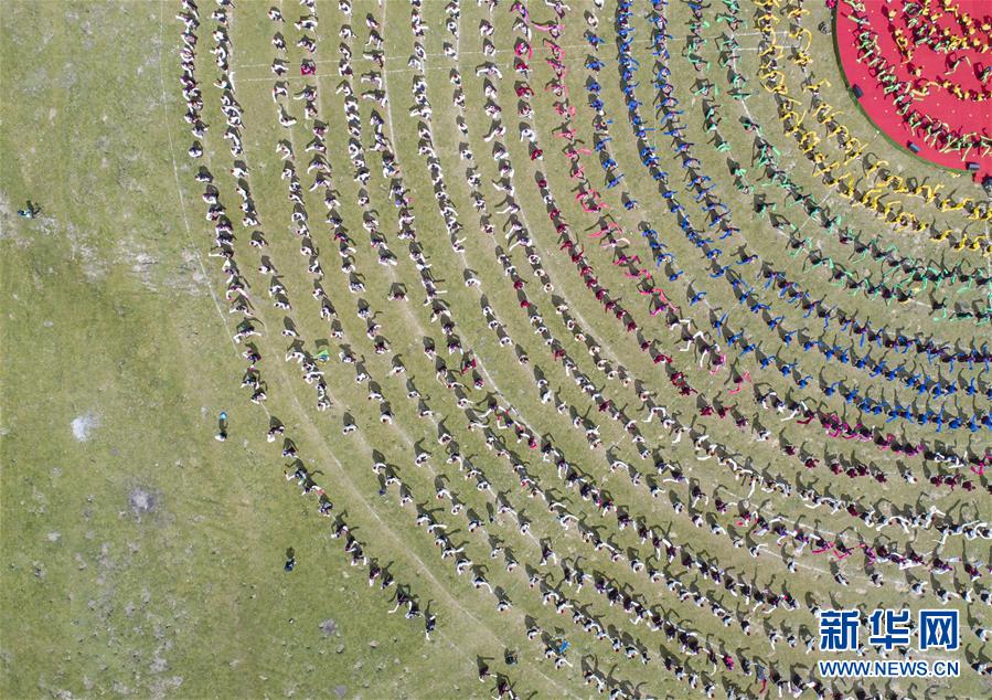 西藏首屆弦子舞展演現(xiàn)場(chǎng)(8月7日攝,無人機(jī)照片)。當(dāng)日,西藏首屆弦子舞展演在昌都市芒康縣舉行。眾多演員同臺(tái)獻(xiàn)藝,表演國(guó)家級(jí)非物質(zhì)文化遺產(chǎn)弦子舞,吸引西藏各地的群眾前來觀看。新華社記者孫非攝