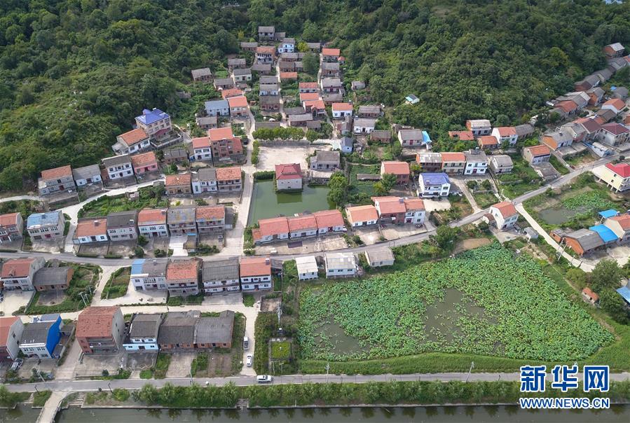 鳥瞰鄂州市長(zhǎng)港鎮(zhèn)峒山村(8月6日攝,無(wú)人機(jī)照片)。新華社記者 程敏 攝