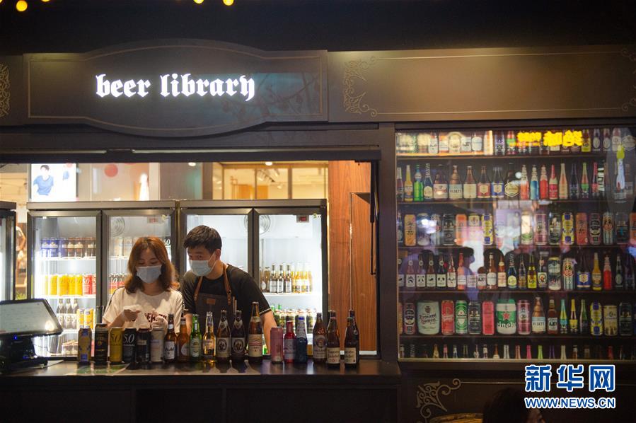 這是8月8日晚在望京小街商業(yè)街拍攝的一家啤酒商店。新華社記者 陳鐘昊 攝