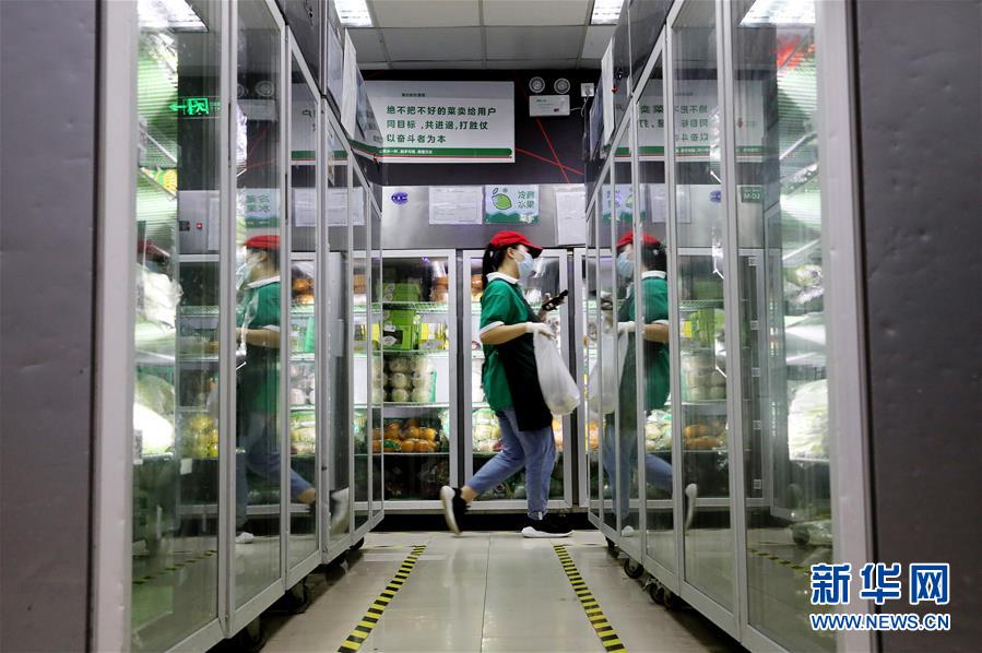 工作人員在叮咚買菜一家前置倉內為網絡訂單配貨(7月17日攝)。近年來,在上海崛起了一批以盒馬、叮咚、拼多多為代表的在線經濟新力量,在助力脫貧攻堅、提升城市居民品質生活方面發(fā)揮著重要作用。電商加持下的“云農業(yè)”加速發(fā)展,一端為市民提供更便宜新鮮的農產品,另一端讓山區(qū)的優(yōu)質產品加速進入城市餐桌,化解交通不便、農產品滯銷等問題。新華社記者方喆攝。