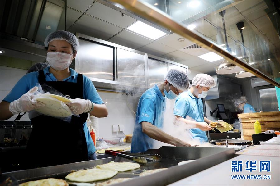 在上海地鐵13號(hào)線世博會(huì)博物館地鐵站附近的一家盒小馬服務(wù)點(diǎn),工作人員在制作煎餅果子等早餐餐品(7月17日攝)。近年來,在上海崛起了一批以盒馬、叮咚、拼多多為代表的在線經(jīng)濟(jì)新力量,在助力脫貧攻堅(jiān)、提升城市居民品質(zhì)生活方面發(fā)揮著重要作用。電商加持下的“云農(nóng)業(yè)”加速發(fā)展,一端為市民提供更便宜新鮮的農(nóng)產(chǎn)品,另一端讓山區(qū)的優(yōu)質(zhì)產(chǎn)品加速進(jìn)入城市餐桌,化解交通不便、農(nóng)產(chǎn)品滯銷等問題。新華社記者方喆攝。