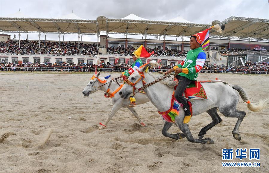 8月10日,騎手馳騁在當雄縣賽馬場。新華社記者晉美多吉攝。