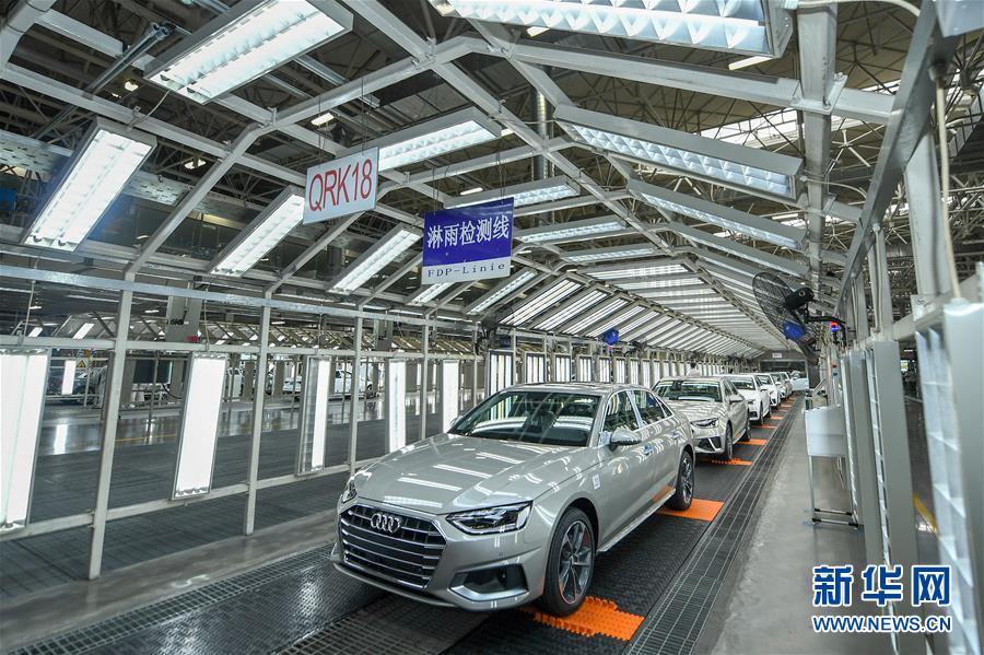 8月10日,在一汽-大眾長春基地總裝車間,工人檢查裝配好的車輛。中國第一汽車集團有限公司7月銷售整車32.2萬輛,同比增長23.2%,延續(xù)上半年的增長態(tài)勢。新華社記者張楠攝。