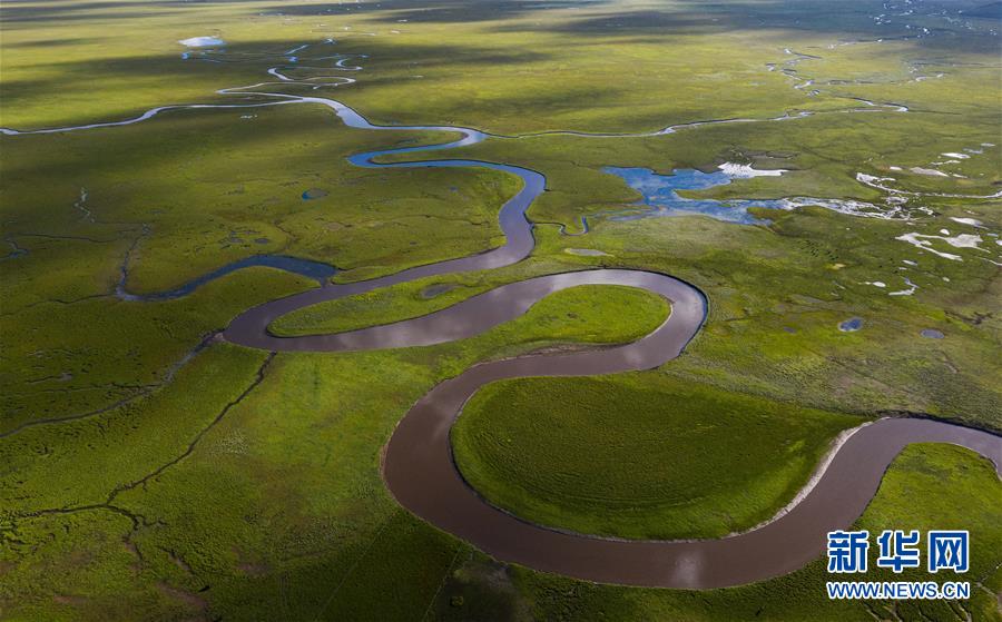 俯瞰泥拉壩濕地里發(fā)辮般的河流,該濕地泥炭富集、水系發(fā)達(8月9日攝,無人機照片)。