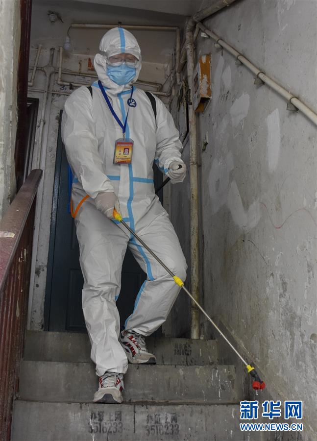 老王和同事們要完成轄區(qū)居民的登記、備案、生活物資配送、困難訴求統(tǒng)計和跟蹤服務等工作?!扒趧諉T”老王不僅要做好服務,每天還要背上消毒工具,對小區(qū)地面、門廊、門把手、樓道、樓梯扶手反復噴灑,濃郁的消毒水味雖然刺鼻,但此刻更能讓居民感到安心。