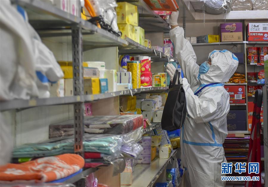 8月12日,烏魯木齊市天山區(qū)山西巷社區(qū)工作人員王志鷹幫居民代購生活用品。新華社記者 高晗 攝