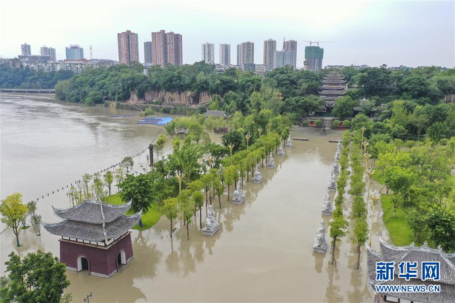 8月12日,重慶市潼南區(qū)大佛寺景區(qū),涪江洪水淹沒景區(qū)廣場(無人機照片)。受強降雨影響,涪江潼南段迎來過境洪水。截至12日下午5時,涪江潼南城區(qū)段最高水位238.5米,超警戒水位0.5米,低于保證水位(240米)。此次過境洪水導致潼南區(qū)部分場鎮(zhèn)低洼地段局部進水,約2700畝農(nóng)作物不同程度受災。新華社記者 黃偉 攝