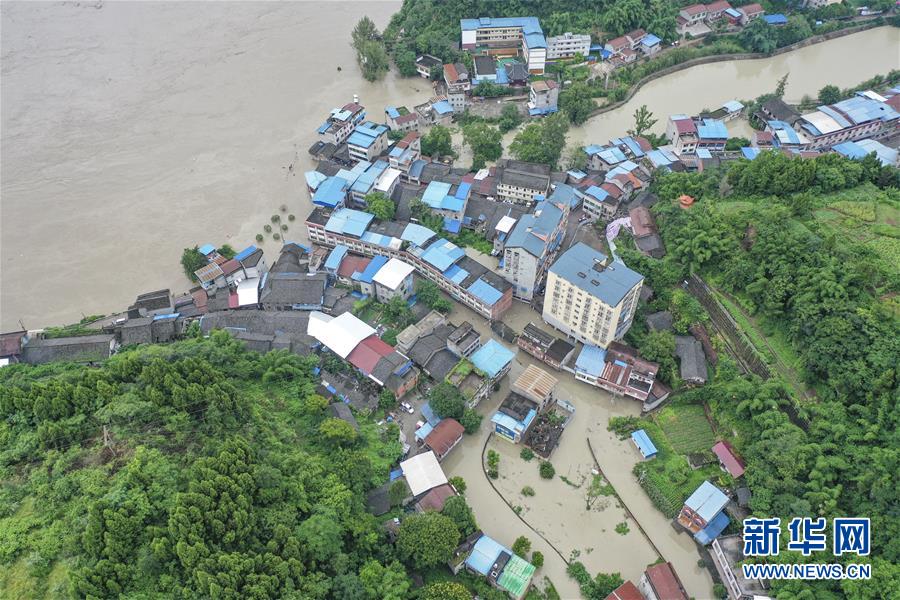8月13日,在重慶市潼南區(qū)米心鎮(zhèn),涪江水位明顯上漲,洪水倒灌進場鎮(zhèn)(無人機照片)。受上游強降雨影響,嘉陵江近日出現(xiàn)明顯漲水過程,“嘉陵江2020年第1號洪水”已在嘉陵江支流涪江形成。重慶市正式啟動洪水防御Ⅱ級應急響應。據(jù)初步統(tǒng)計,截至13日16時30分,位于涪江畔的重慶市潼南區(qū),沿涪江7個鎮(zhèn)街不同程度受災,受災人數(shù)8209人,轉(zhuǎn)移人口6658人,農(nóng)作物受災面積5579畝。新華社記者黃偉攝