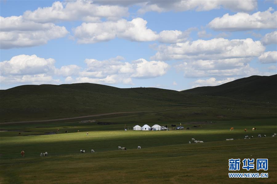 這是克什克騰旗貢格爾草原一景(8月11日攝)??耸部蓑v旗位于內(nèi)蒙古自治區(qū)赤峰市西北部,境內(nèi)的湖泊、河流、草原、森林等自然景觀,讓人們流連忘返。新華社記者劉磊攝