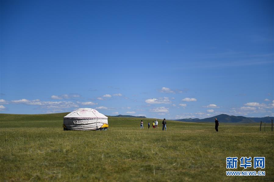 游客在克什克騰旗貢格爾草原上游玩(8月11日攝)。克什克騰旗位于內蒙古自治區(qū)赤峰市西北部,境內的湖泊、河流、草原、森林等自然景觀,讓人們流連忘返。新華社記者劉磊攝