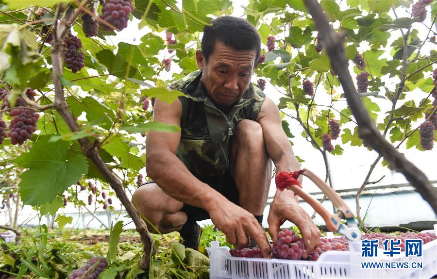 8月13日,在吉林省磐石市煙筒山鎮(zhèn)民主村,村民在葡萄大棚內(nèi)采摘葡萄。時(shí)下,吉林省磐石市煙筒山鎮(zhèn)棚膜葡萄園區(qū)內(nèi)的大棚葡萄進(jìn)入采摘季,農(nóng)民喜獲豐收。近年來(lái),當(dāng)?shù)赝ㄟ^(guò)“共創(chuàng)”與“扶持”相結(jié)合的模式大力發(fā)展特色農(nóng)業(yè),建設(shè)葡萄種植大棚300余棟,以此帶動(dòng)村集體經(jīng)濟(jì)發(fā)展,助力農(nóng)民增收致富。新華社記者許暢攝