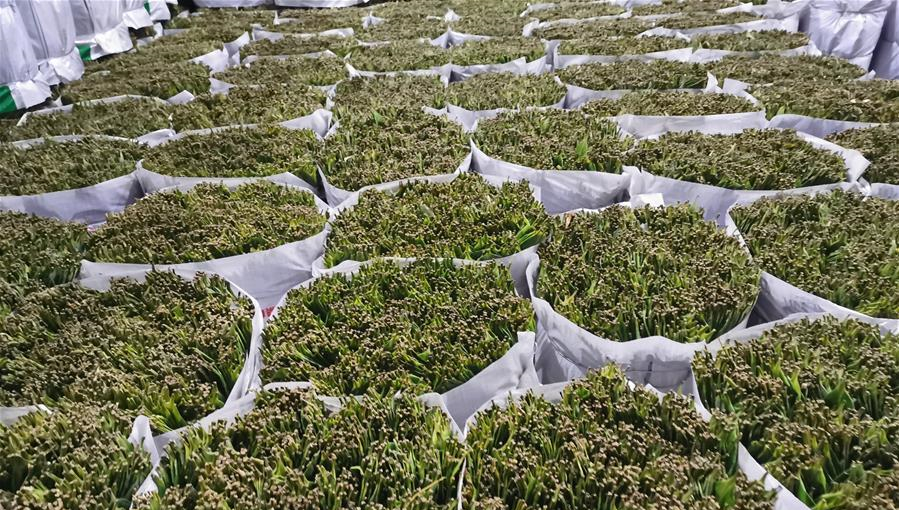 6月18日,在湖南省張家界市桑植縣,康華粽葉扶貧工廠的工人在搬運粽葉。