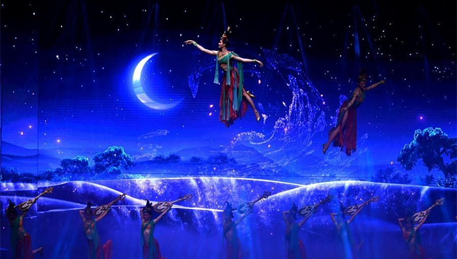 6月22日拍攝的《西安千古情》演出現(xiàn)場。該劇以一位華裔少女歸國尋根為故事主線,濃縮展現(xiàn)了古城西安的悠久歷史文化。