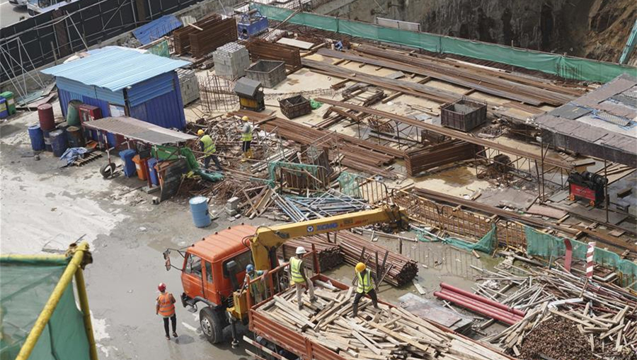 6月21日,在斯里蘭卡首都科倫坡,工人在中國港灣科倫坡房建項目工地上作業(yè)。