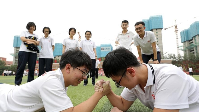 2020年高考臨近,河北省衡水市第二中學組織開展多種形式的集體“減壓”活動,幫助高三學生在緊張備考之余釋放身心壓力,以輕松、樂觀、自信的心態(tài)迎接高考。