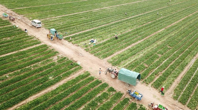 6月10日,在大同鎮(zhèn)馬會村,農(nóng)民駕駛小麥秸稈打捆機在麥田作業(yè)。