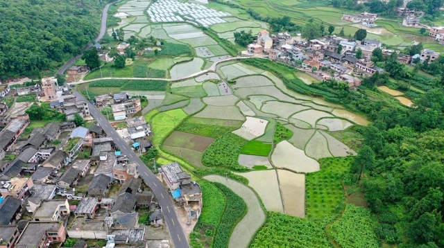 夏日時節(jié),貴州省貴定縣昌明鎮(zhèn)郊外稻田翠綠,房屋村寨星羅棋布,呈現(xiàn)出一幅美麗的田園畫卷。