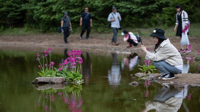 近日,位于四川省漢源縣宜東鎮(zhèn)桌子山上的報春花遍地綻放,引來游人觀賞拍照。