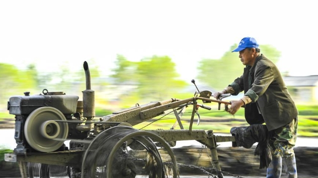 5月17日,在吉林省長(zhǎng)春市雙陽(yáng)區(qū)徐家村,農(nóng)民在水稻田間耕作。
