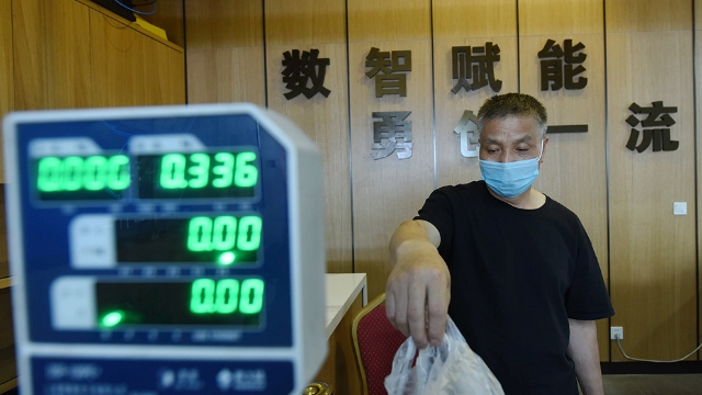 5月17日,在江西省博物館新館,參觀者入館前測(cè)量體溫。
