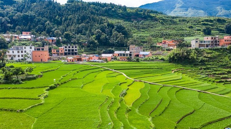 夏日時(shí)節(jié),貴州省盤州市新民鎮(zhèn)的梯田風(fēng)景如畫。