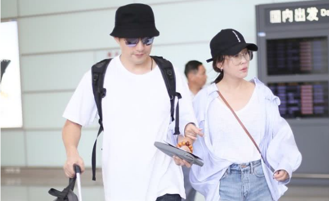 2019年8月10日,北京,趙雅芝與老公黃錦燊現(xiàn)身機場。