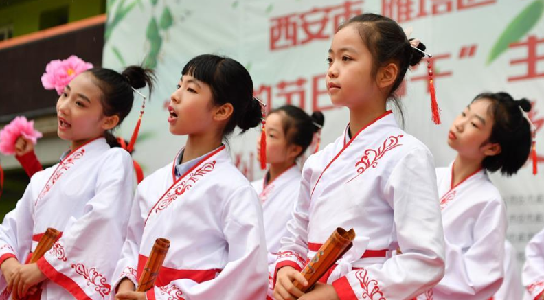 當日,陜西師范大學附屬小學在位于西安的校園里舉行傳統(tǒng)民俗活動迎接即將到來的端午節(jié)。