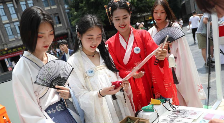 當日,50余位漢服愛好者通過開展?jié)h服巡游、游戲互動、古樂舞等活動,邀請游客在成都寬窄巷子參與一場尋“香”之旅、體驗傳統(tǒng)文化。