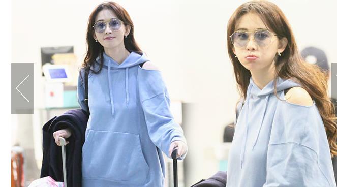 秦嵐穿星星外套活力四射 架黑超涂紅唇笑靨如花