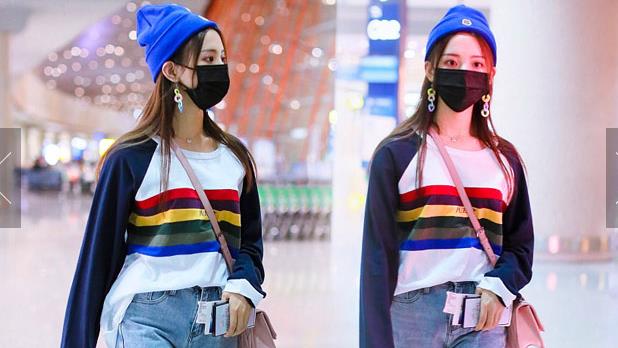 2018年9月25日,北京,“錦鯉少女”楊超越現(xiàn)身機場,她身穿“彩虹裝”青春無敵,戴著糖果色耳環(huán),細節(jié)處可愛吸睛。