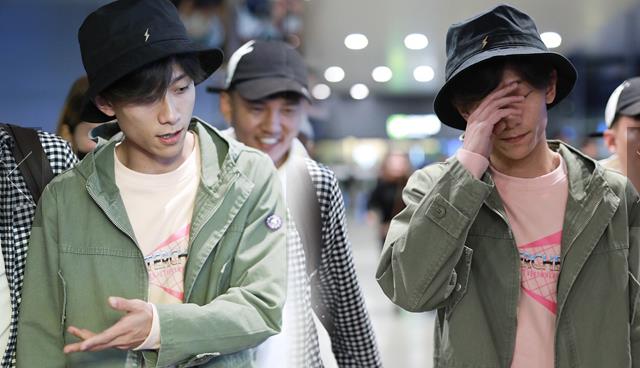 2018年10月14日,上海,張一山抵達上海機場。張一山戴漁夫帽眼袋嚴重瞬間老十歲, 用手擋臉似不愿上鏡。