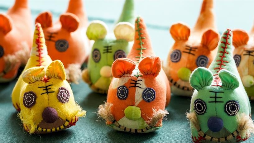 4月8日,在重慶石柱中益鄉(xiāng)巾幗扶貧工坊,一名當?shù)貗D女在縫制文創(chuàng)產(chǎn)品。