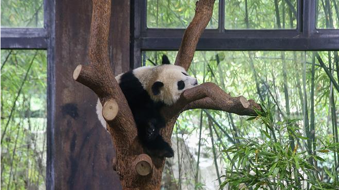 位于四川臥龍國家級自然保護(hù)區(qū)的中國大熊貓保護(hù)研究中心臥龍神樹坪基地有一所“熊貓幼兒園”,目前,18只幼年大熊貓在這里悠閑地生活著。