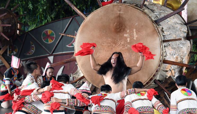 在云南省西雙版納傣族自治州景洪市基諾山基諾族鄉(xiāng)的基諾族村寨,每天的基諾大鼓舞表演吸引了眾多游客前來觀賞體驗,帶動了基諾族群眾就業(yè)和增收。
