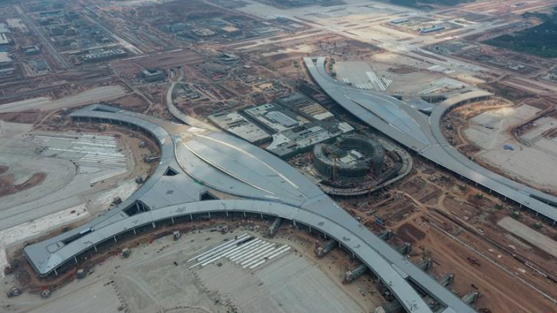 這是6月15日拍攝的成都天府國際機場建設現(xiàn)場(無人機照片)。