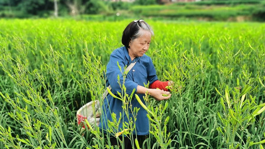 初夏時(shí)節(jié),湖南祁東黃土鋪鎮(zhèn),郁郁蔥蔥黃花菜漫山遍野。