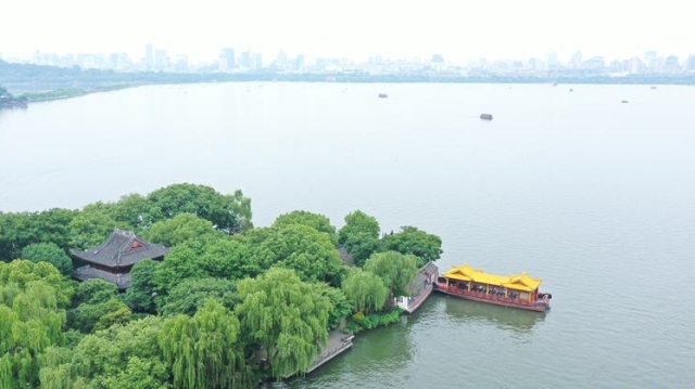 隨著氣溫升高,杭州西湖綠意蔥蘢,展現出柔美的湖光山色。
