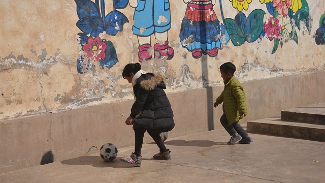 在海拔2700米高山上的瓦吾小學(xué),一群孩子們在裸露著泥土的足球場上,追逐著滾動的足球,汗水浸濕了了衣服。