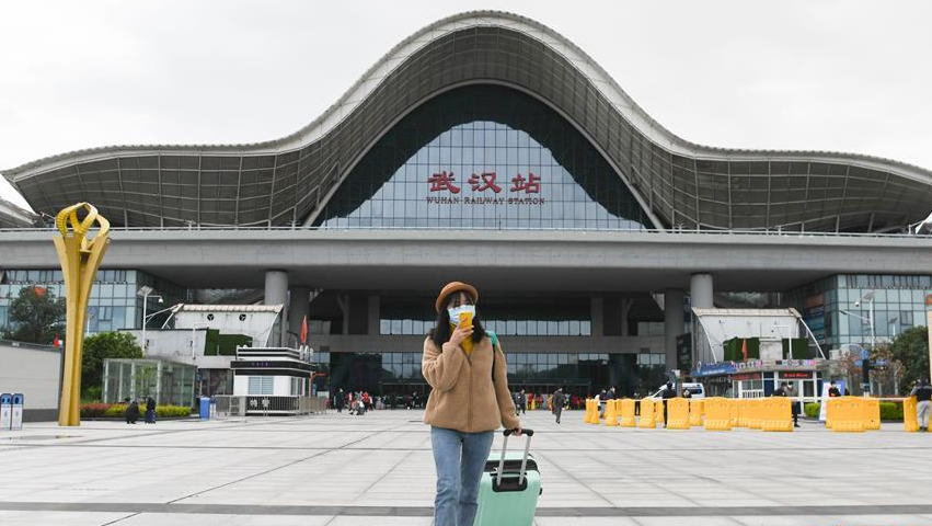 2020年3月28日,湖北武漢。等待65天后,28日零時起,武漢市恢復(fù)鐵路客站到達(dá)業(yè)務(wù),武漢三大火車站開門迎客。