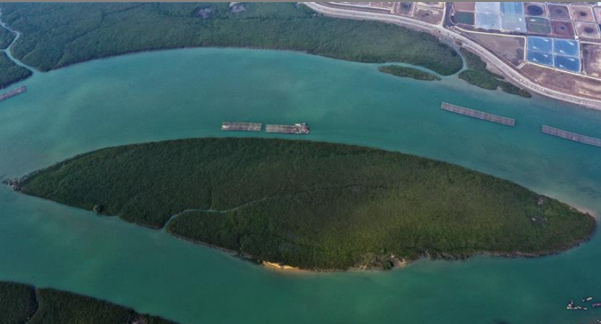 12月21日無人機拍攝的廣西合浦縣黨江鎮(zhèn)更螺圍出??谝痪啊P氯A社記者 張愛林 攝 12月21日無人機拍攝的廣西合浦縣黨江鎮(zhèn)更螺圍出??诘奈r塘。