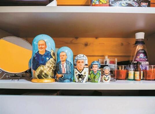 說起來,老烏沙科夫和中國也有點(diǎn)緣分,因?yàn)樗膬合眿D是一位來自中國杭州的女孩。烏沙科夫的家處于莫斯科郊外的富人區(qū),其實(shí)當(dāng)你踏入他家大門,就能立刻感覺踏入了一個冰球運(yùn)動員的世界。墻角里擺放著的全是冰球桿,家里的各種裝飾也都是由冰球桿以及各種海報組成的。最有趣的是,套娃和伏特加酒瓶上,都特別定制著老人的照片?!斑@個很棒!”記者指著套娃說道,而老烏沙科夫聳聳肩,表示很淡定。