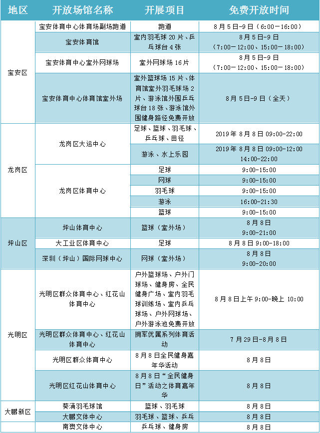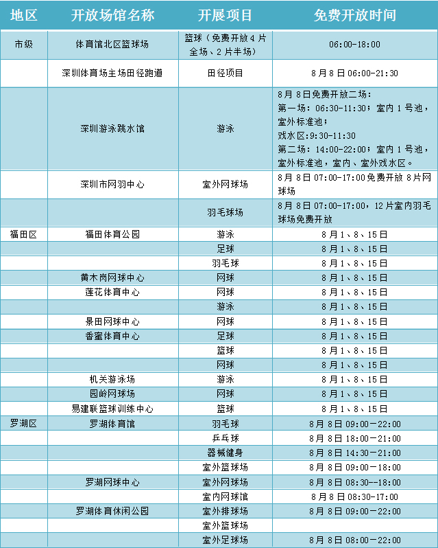 附:場館免費開放表
