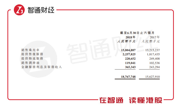上半年,該公司收入增長20.1%,其中乘用車銷售收入增長19.6%,售后服務(wù)收入增長為24.3%,供應(yīng)鏈業(yè)務(wù)收入下滑3.4%,金融服務(wù)收入增長50.2%,以上四類收入貢獻分別為84.2%,12%、1.8%和2%,收入增長貢獻分別為82.5%、14%、-0.4%和3.9%。
